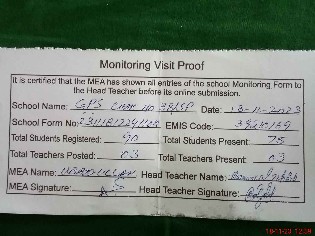| EMIS Code: 39210169 | Name of School: GPS 38 SP | |||