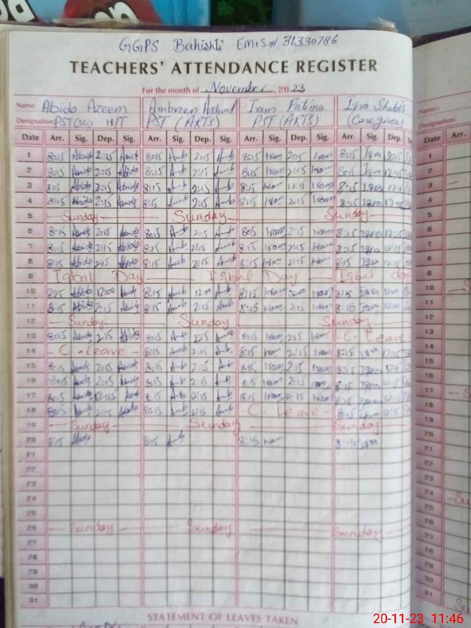 | EMIS Code: 31330786 | Name of School: GGPS BAHISHTI | |||