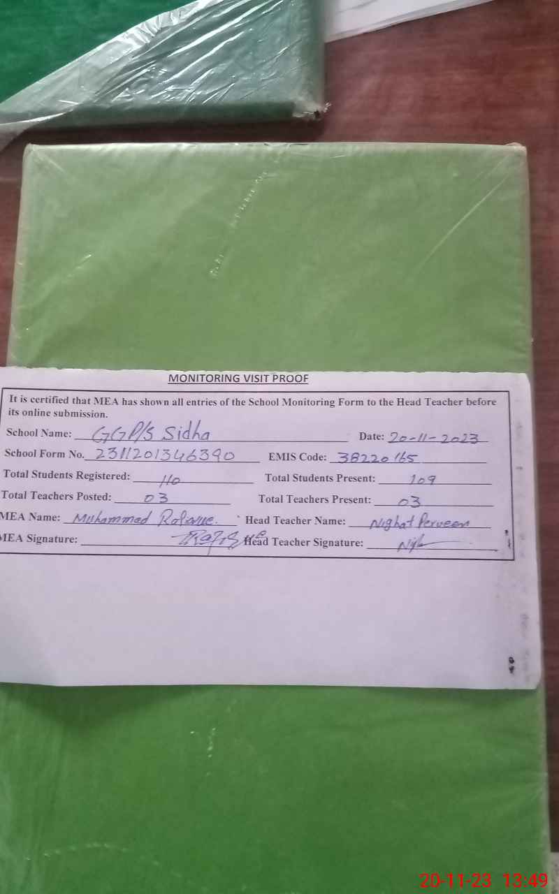 | EMIS Code: 38220165 | Name of School: GGPS SIDHA | |||