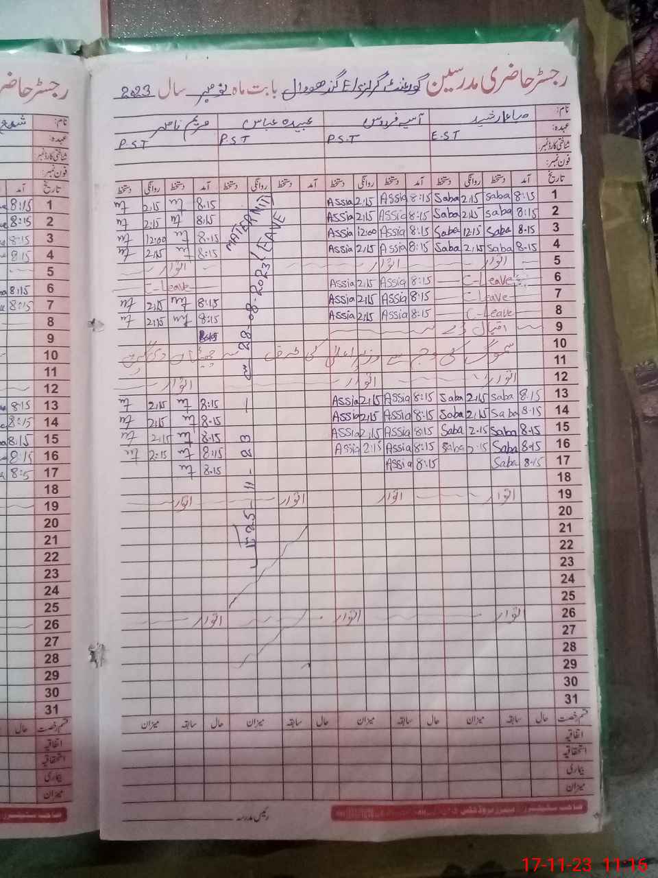 | Leave | Duty | Absent | Maternity | Medical | Ex- Pak |