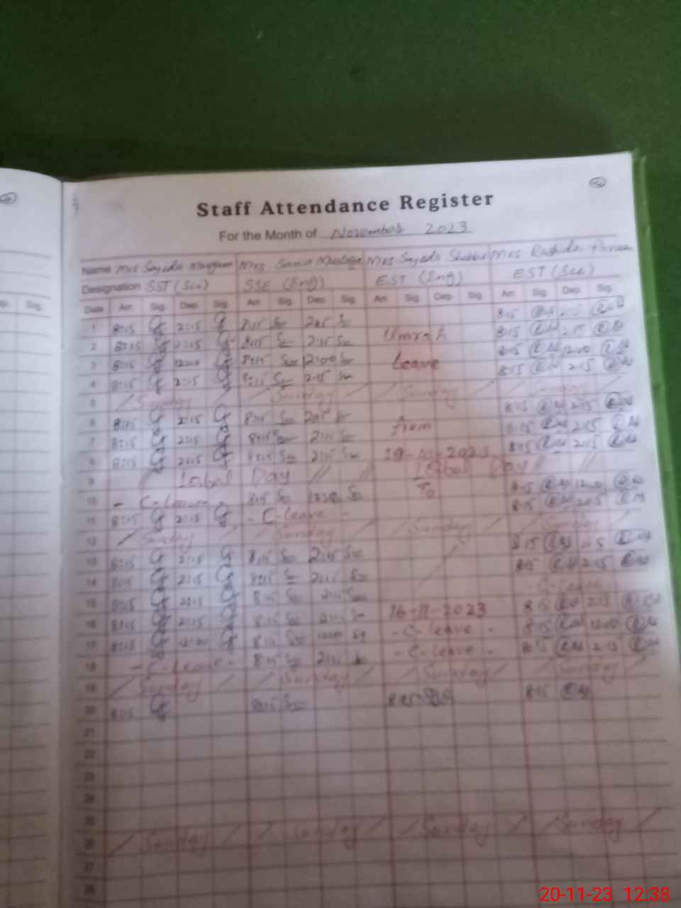 | 31**** | Sa**** Kh**** | JUNIOR CLK | Regular | 0 | 31 | 0 | 0 | 0 | 0 | 0 | 0 | 0 | Other |