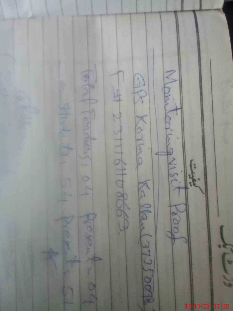 | Attendance Register | Head Teacher | MEA with School | Visit Proof |