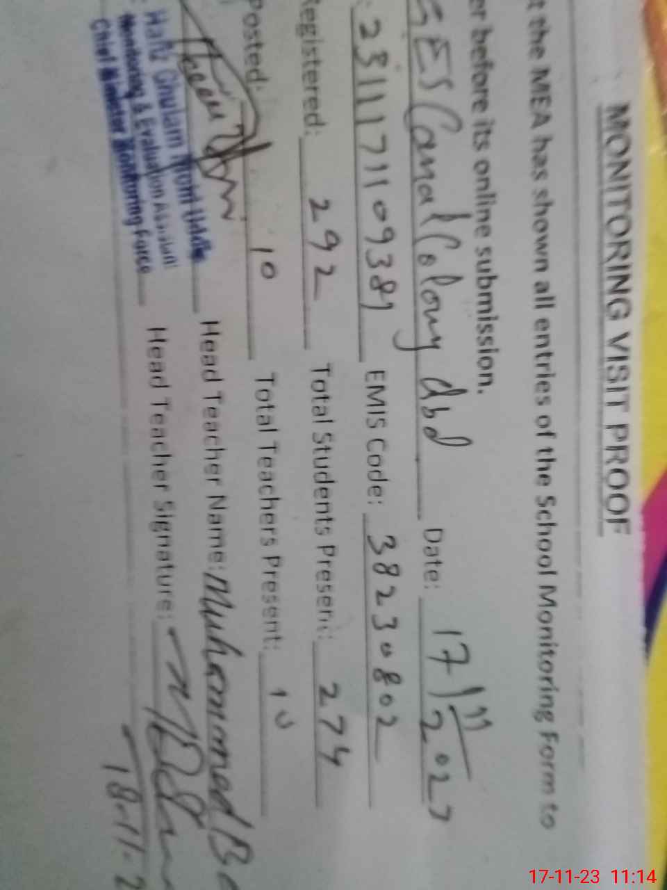 | EMIS Code: 38230802 | Name of School: GES CANAL COLONY GUNJIAL | |||