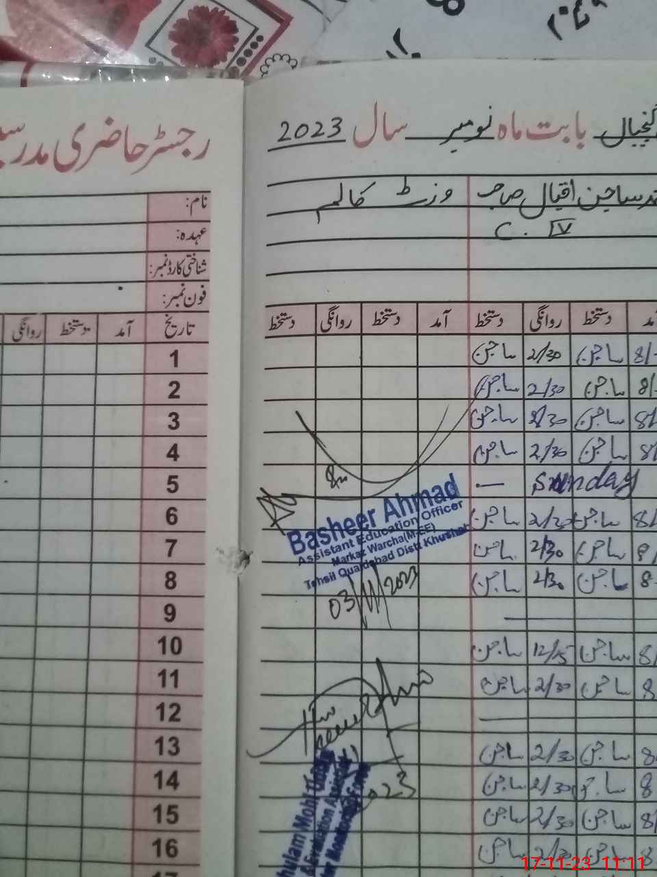 | Name: Mu**** As**** Iq**** Designation: (School Headmaster's/Headmistress's) Sst Phone/Cell Number: 03**** |