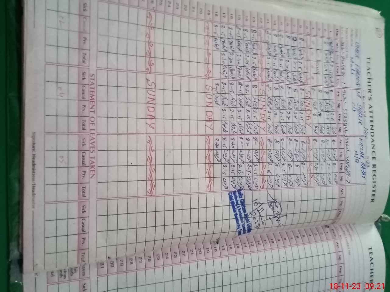| Attendance Register | Head Teacher | MEA with School | Visit Proof |