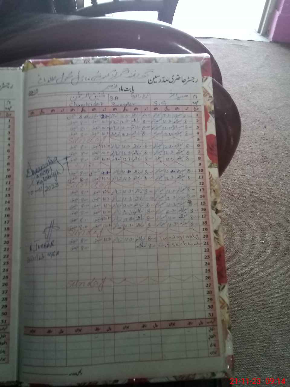 | CNIC | Full Name | Designation | R/C | Absence During Last Calender Month |