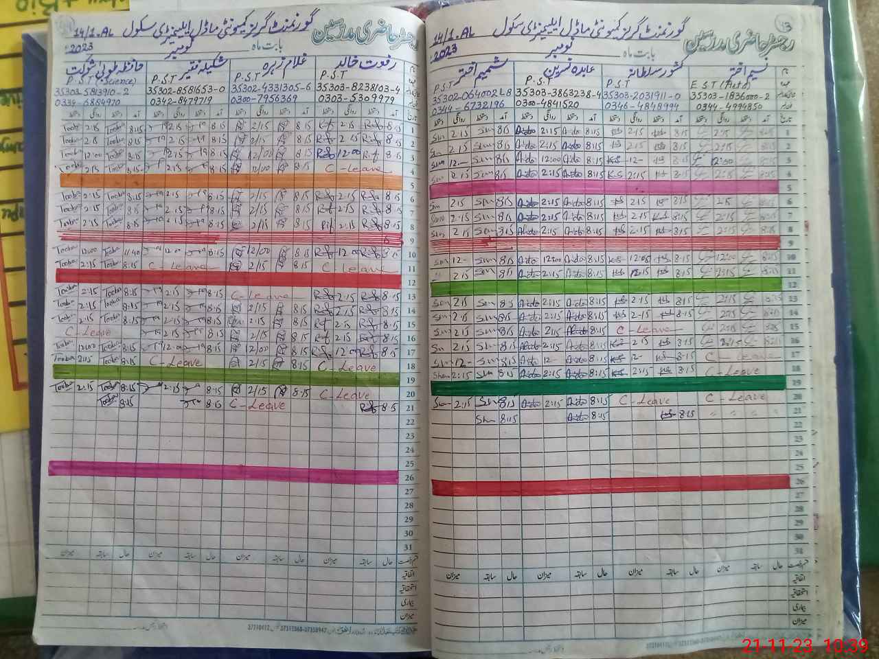 | CNIC | Full Name | Designation | R/C | Absence During Last Calender Month |
