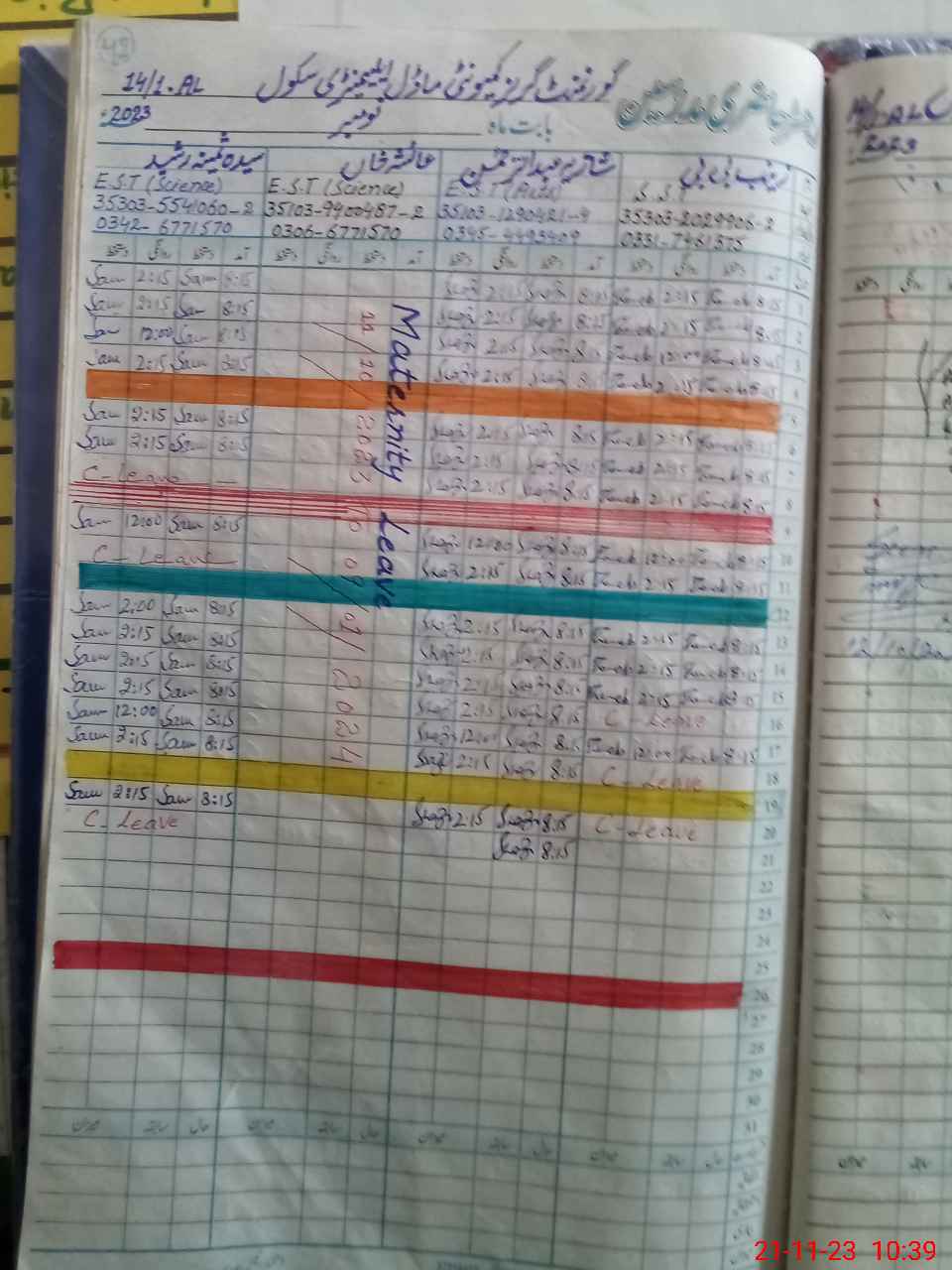 | Leave | Duty | Absent | Maternity | Medical | Ex- Pak |