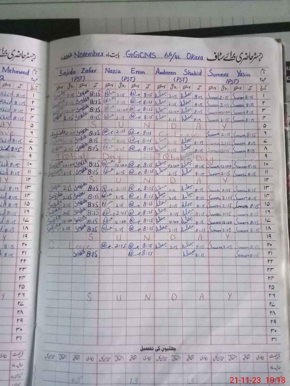 | District: OKARA | Tehsil: OKARA | Markaz: 4/4.L-FEMALE | Level: Primary | |