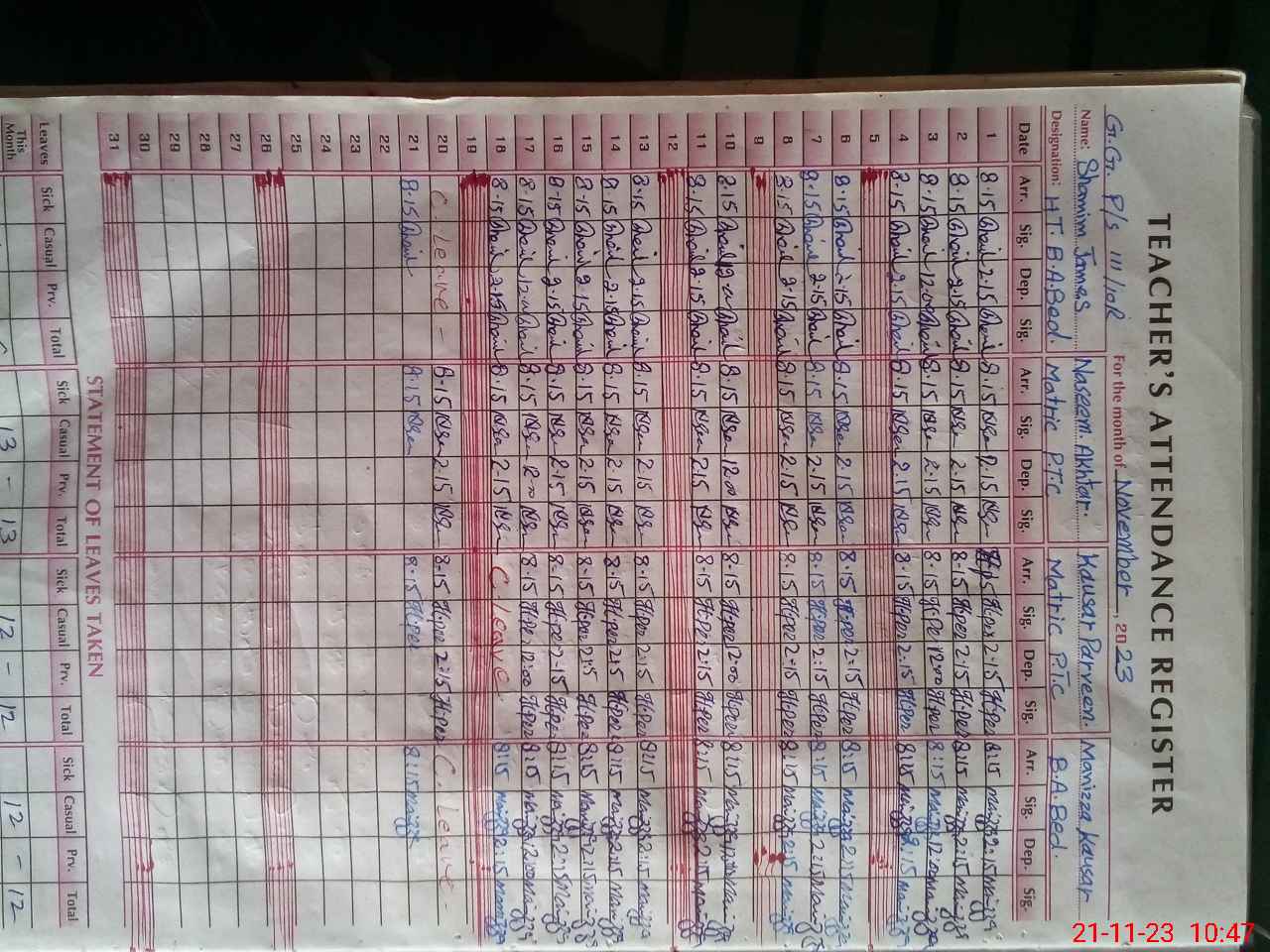 | Name: SH**** JA**** Designation: (School Headmaster's/Headmistress's) PST Phone/Cell Number: 03**** |