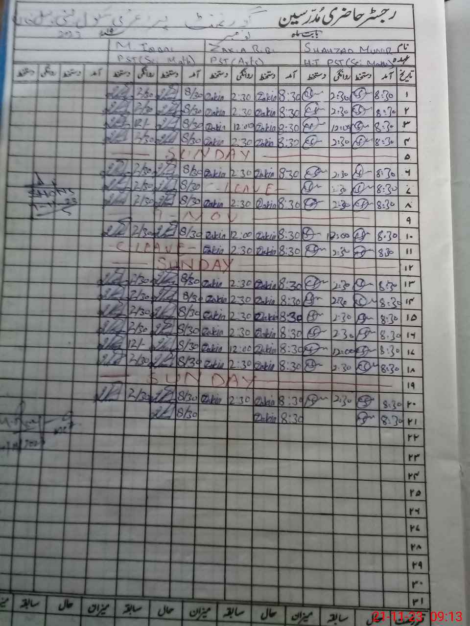 | Name: SH**** MU**** Designation: (School Headmaster's/Headmistress's) PST Phone/Cell Number: 03**** |
