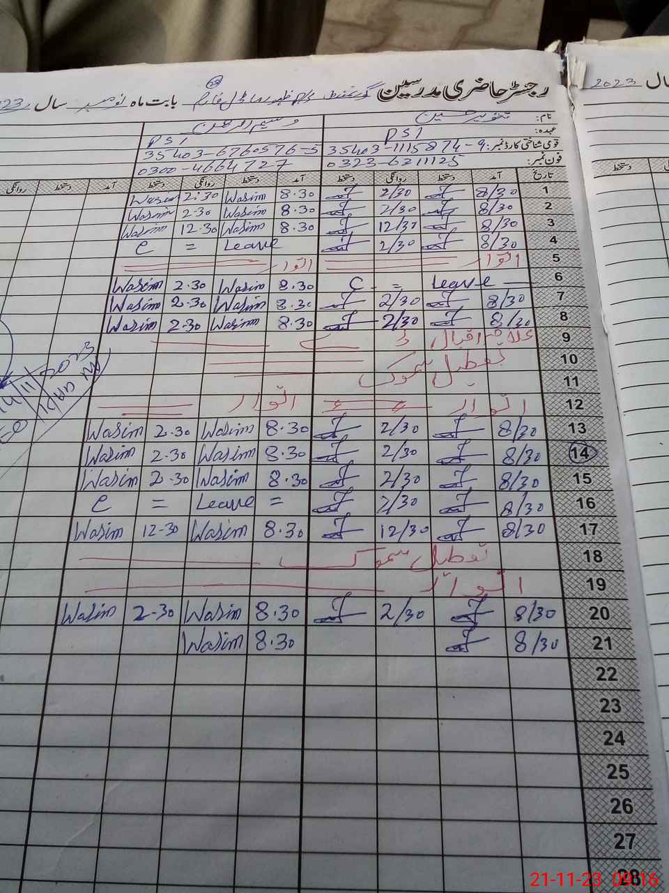 | CNIC | Full Name | Designation | R/C | Absence During Last Calender Month |