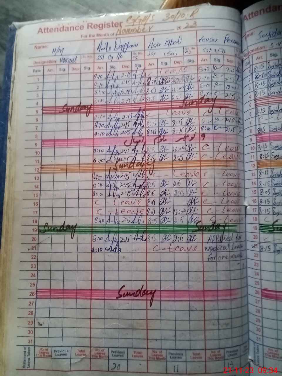 | Leave | Duty | Absent | Maternity | Medical | Ex- Pak |