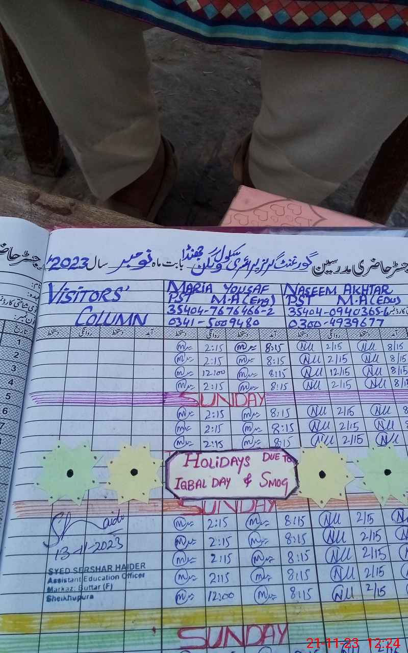 | District: SHEIKHUPURA | Tehsil: SHEIKHUPURA | Markaz: BUTTER-FEMALE | Level: Primary | |