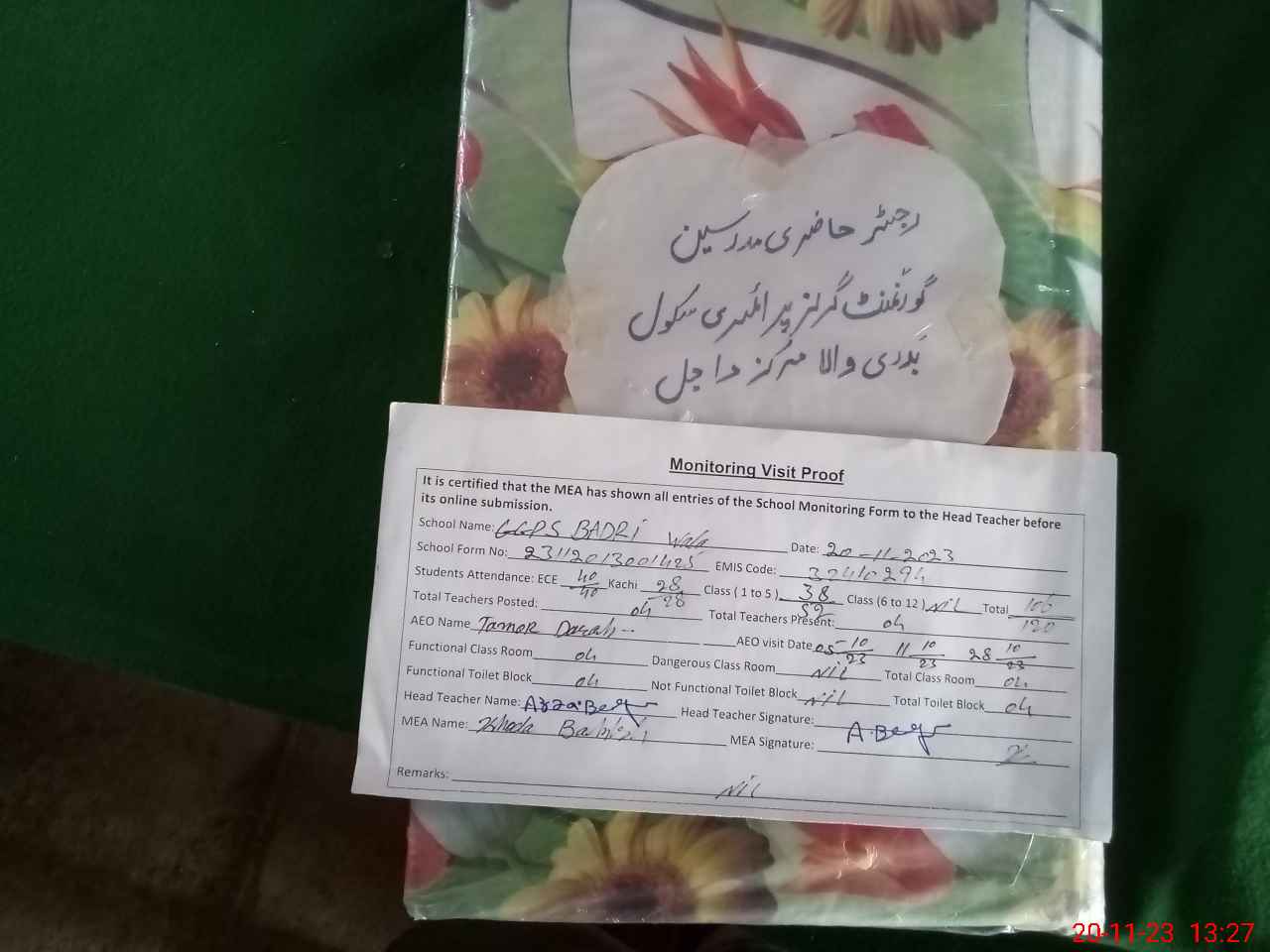 | EMIS Code: 32410294 | Name of School: GGPS BADRI WALA | |||