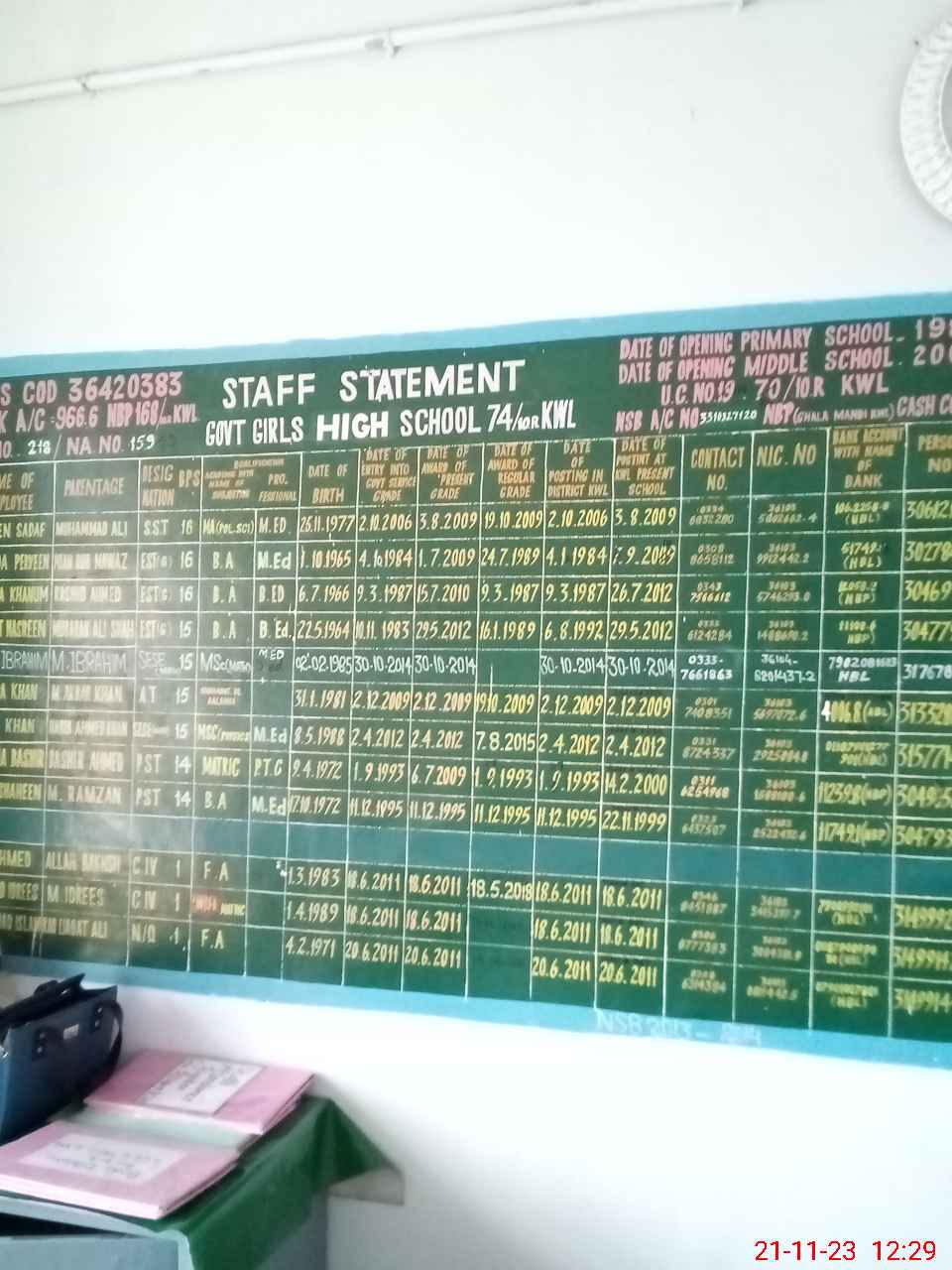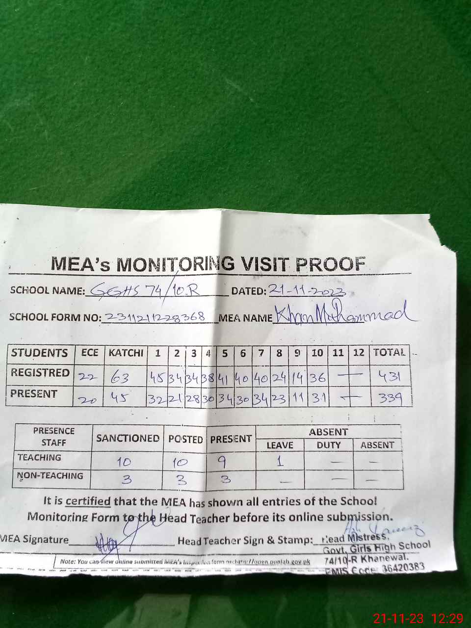 | EMIS Code: 36420383 | Name of School: GGHS 74/10-R, KHANEWAL | |||