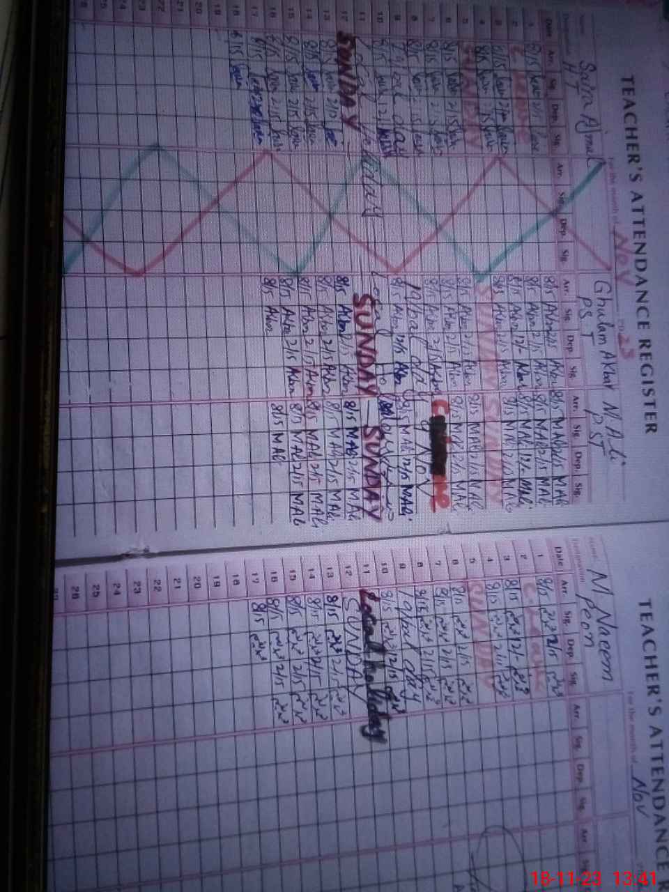 | CNIC | Full Name | Designation | R/C | Absence During Last Calender Month |