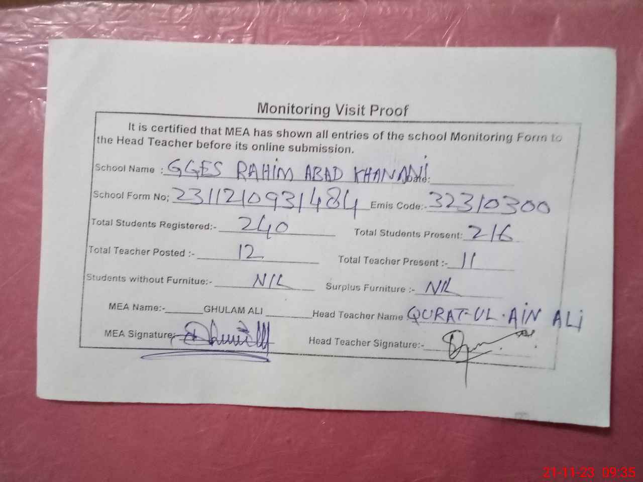 | EMIS Code: 32310300 | Name of School: GGES RAHIM ABAD KHANANI | |||