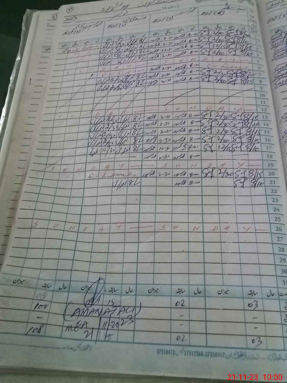 | CNIC | Full Name | Designation | R/C | Absence During Last Calender Month |