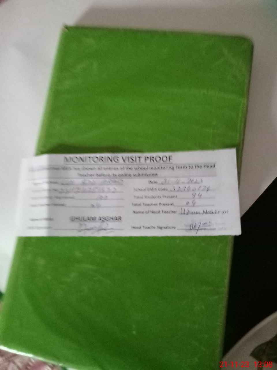 | Attendance Register | Head Teacher | MEA with School | Visit Proof |