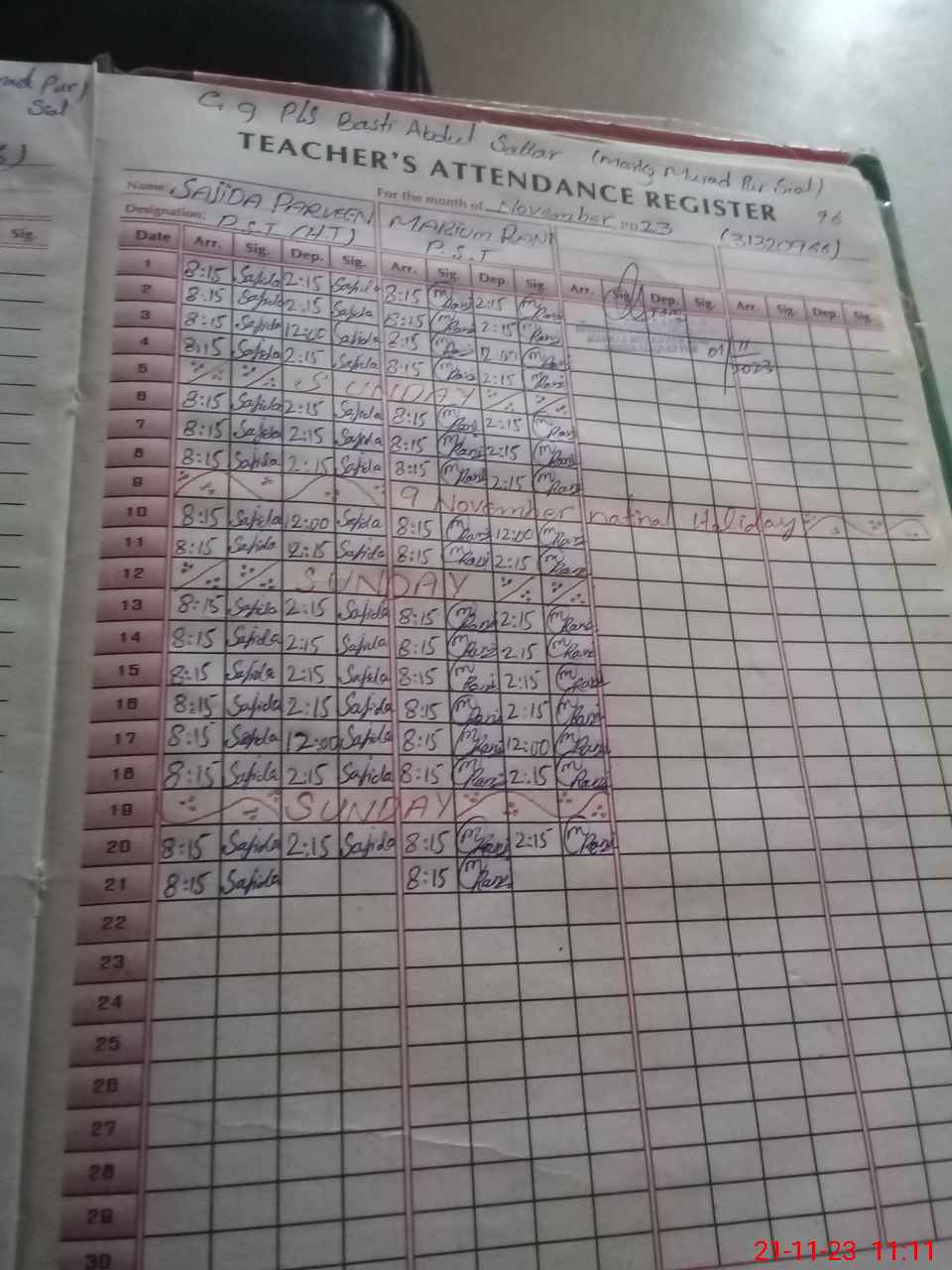 | Name: Sa**** Pe**** Designation: (School Headmaster's/Headmistress's) PST Phone/Cell Number: 03**** |