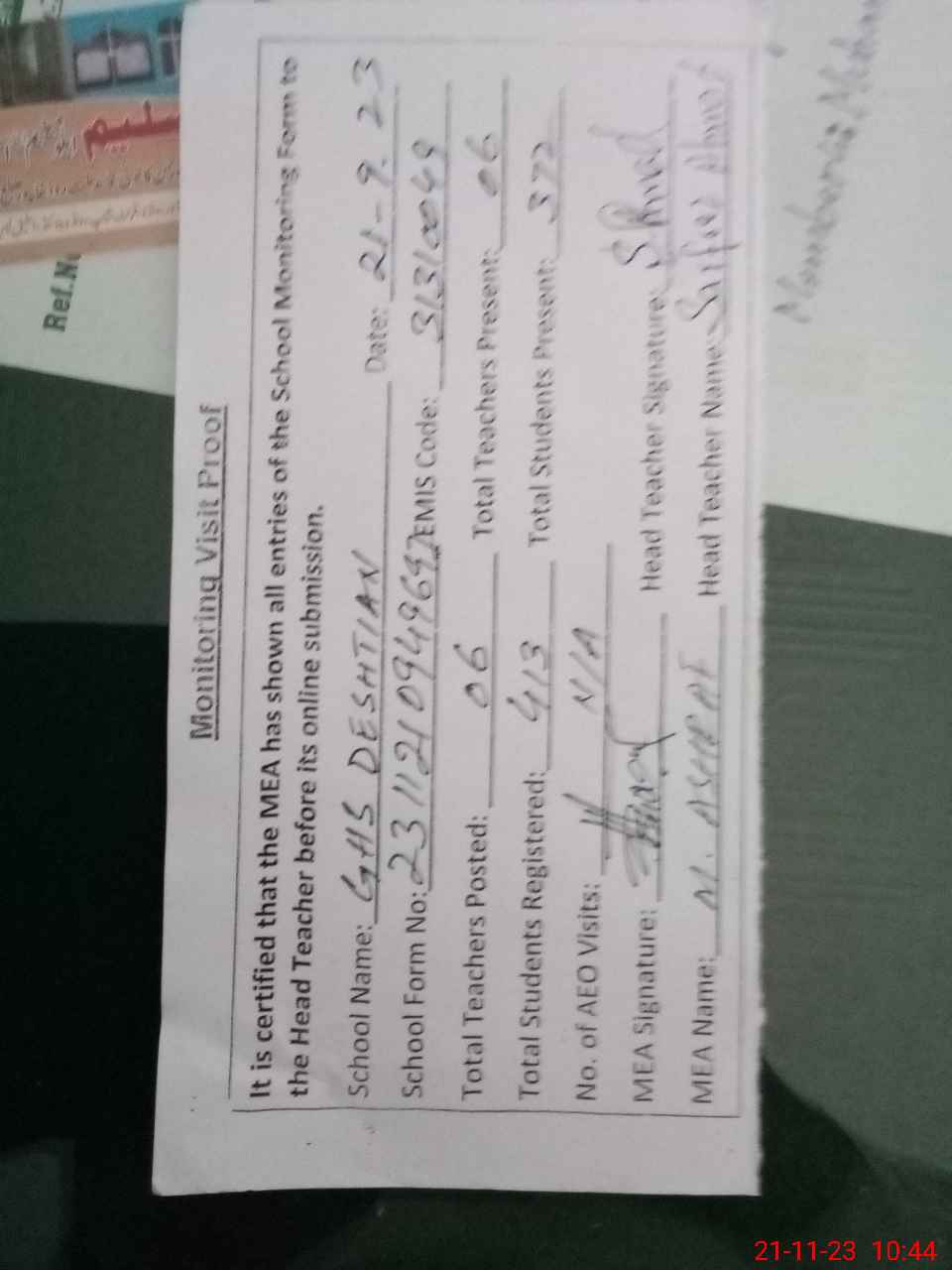 | EMIS Code: 31310049 | Name of School: GHS DESHTIAN | |||