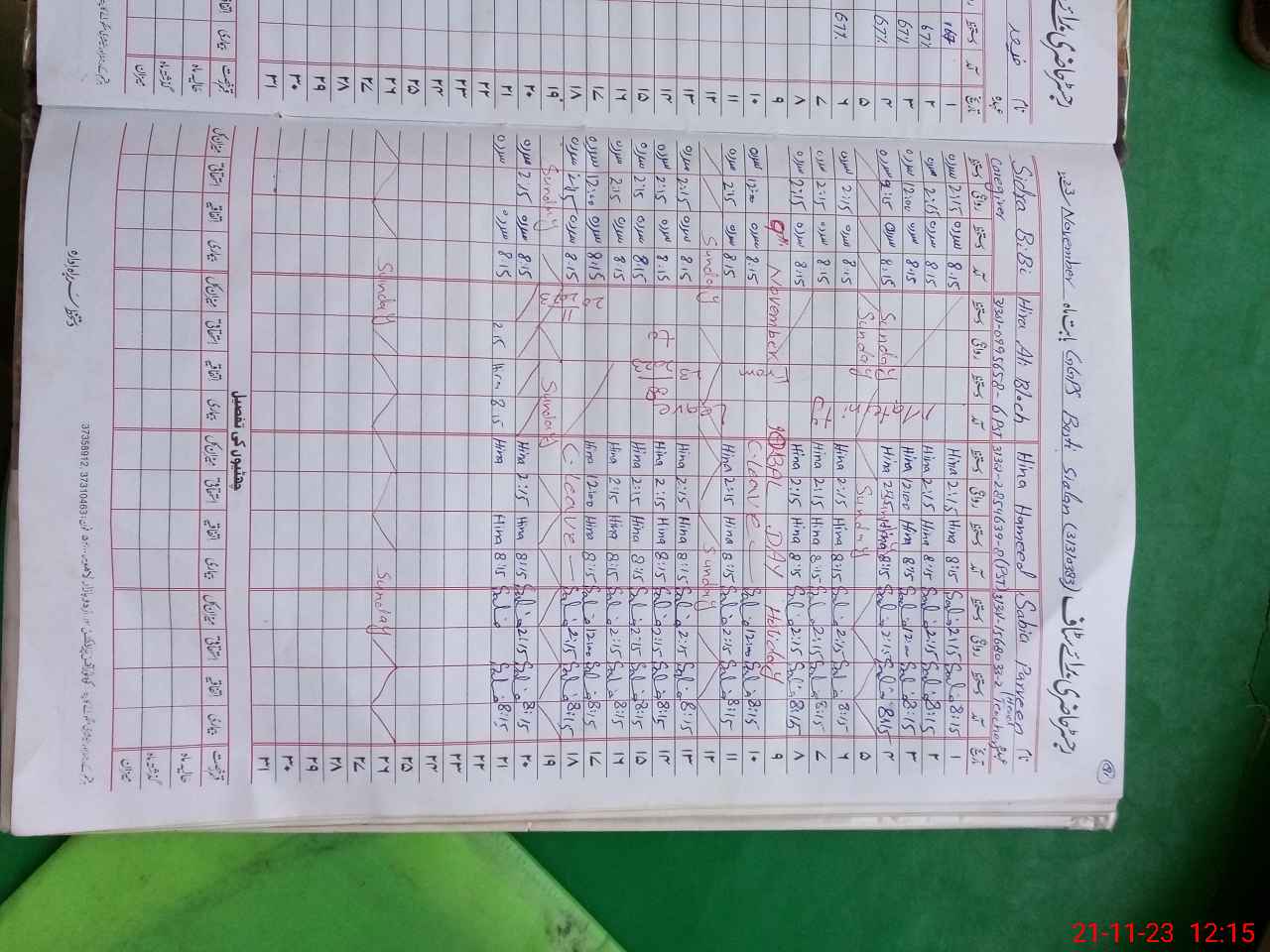 | CNIC | Full Name | Designation | R/C | Absence During Last Calender Month |