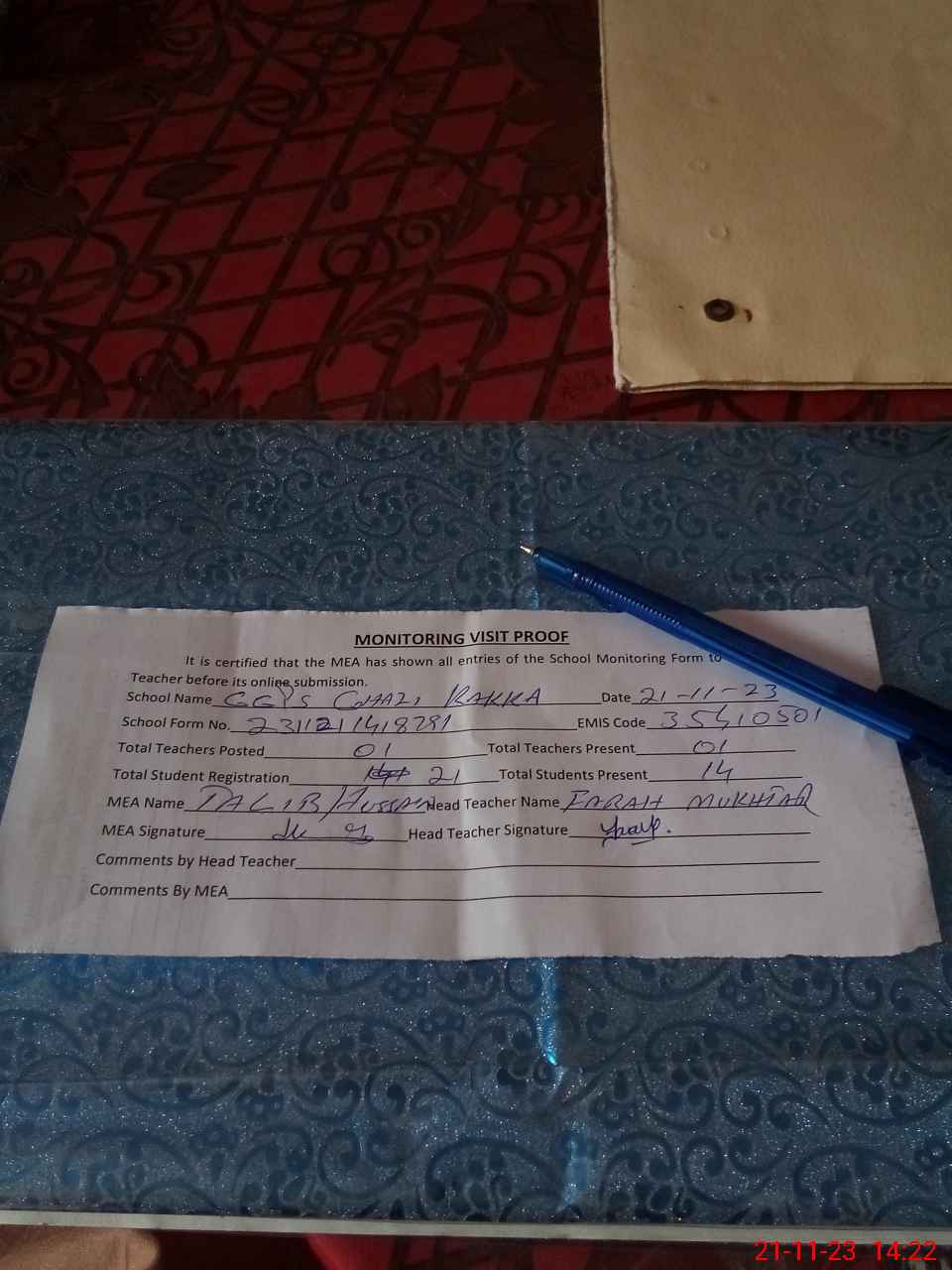 | EMIS Code: 35410501 | Name of School: GGPS GHAZI KAKA | |||