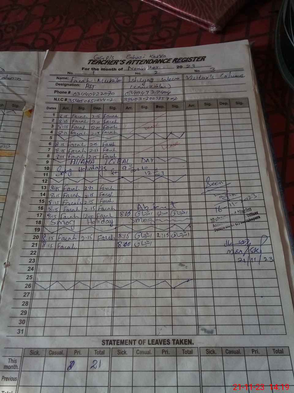 | Name: FA**** MU**** Designation: (School Headmaster's/Headmistress's) PST Phone/Cell Number: 03**** |