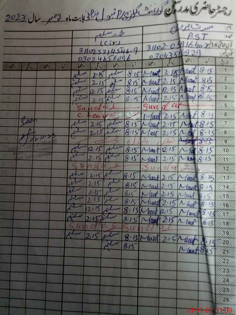 | Name: MU**** PE**** Designation: (School Headmaster's/Headmistress's) PST Phone/Cell Number: 03**** |