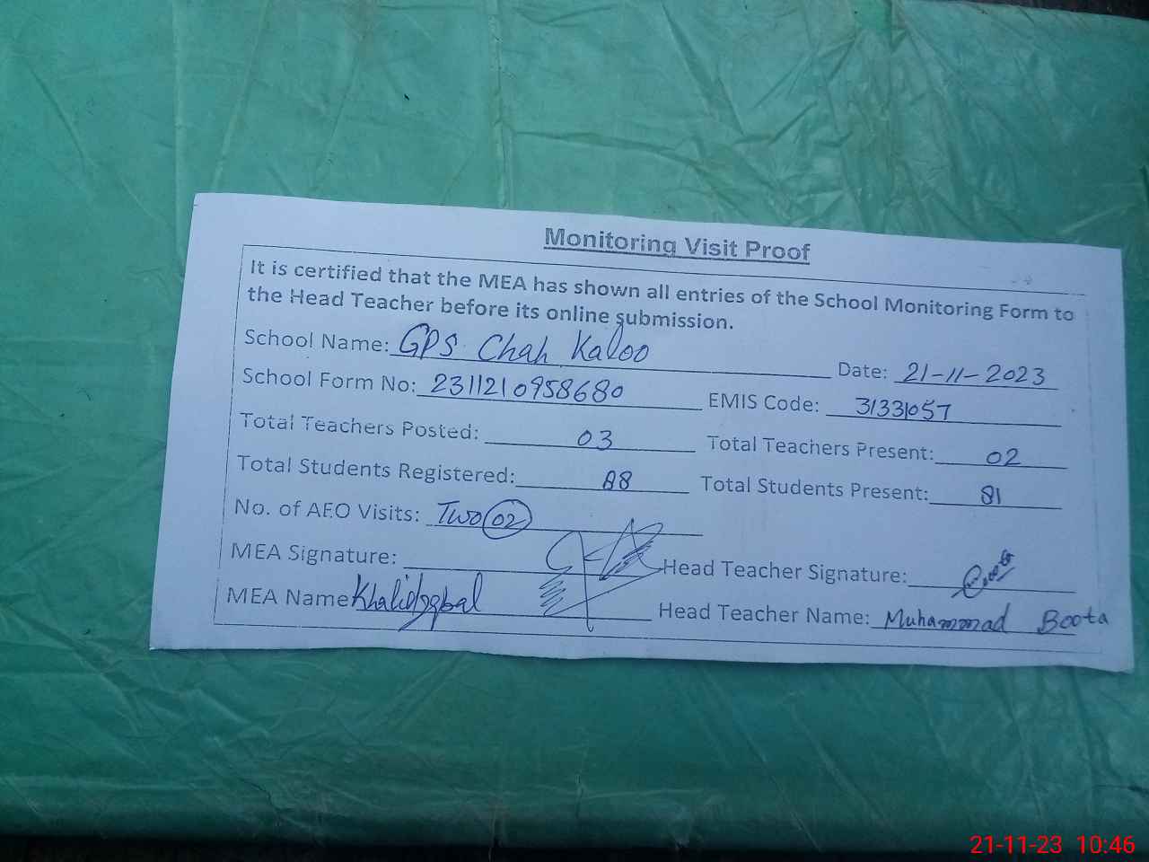 | EMIS Code: 31331057 | Name of School: GPS BASTI CHAH KALOO | |||
