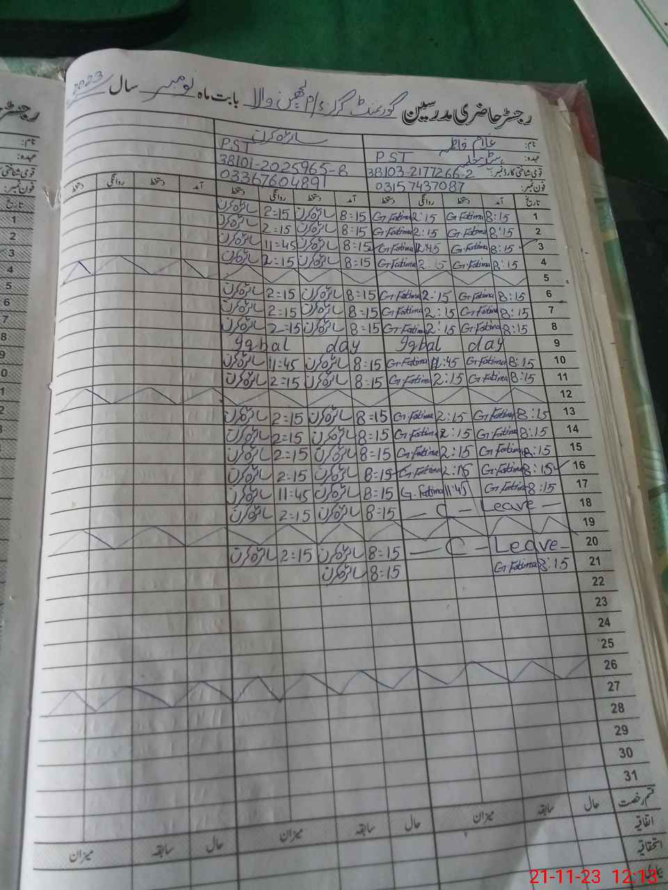 | CNIC | Full Name | Designation | R/C | Absence During Last Calender Month |