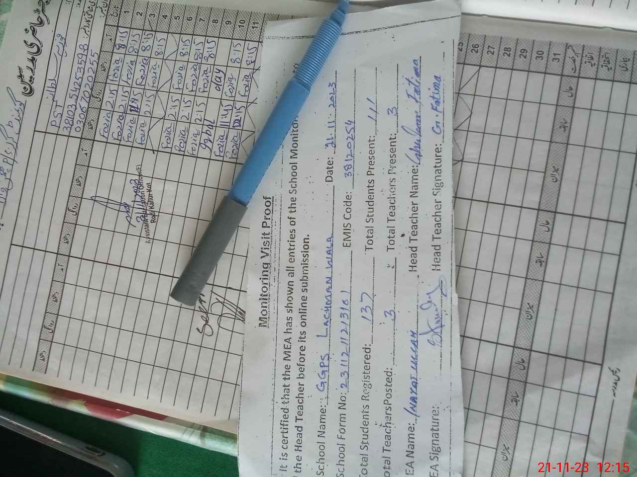 | Attendance Register | Head Teacher | MEA with School | Visit Proof |