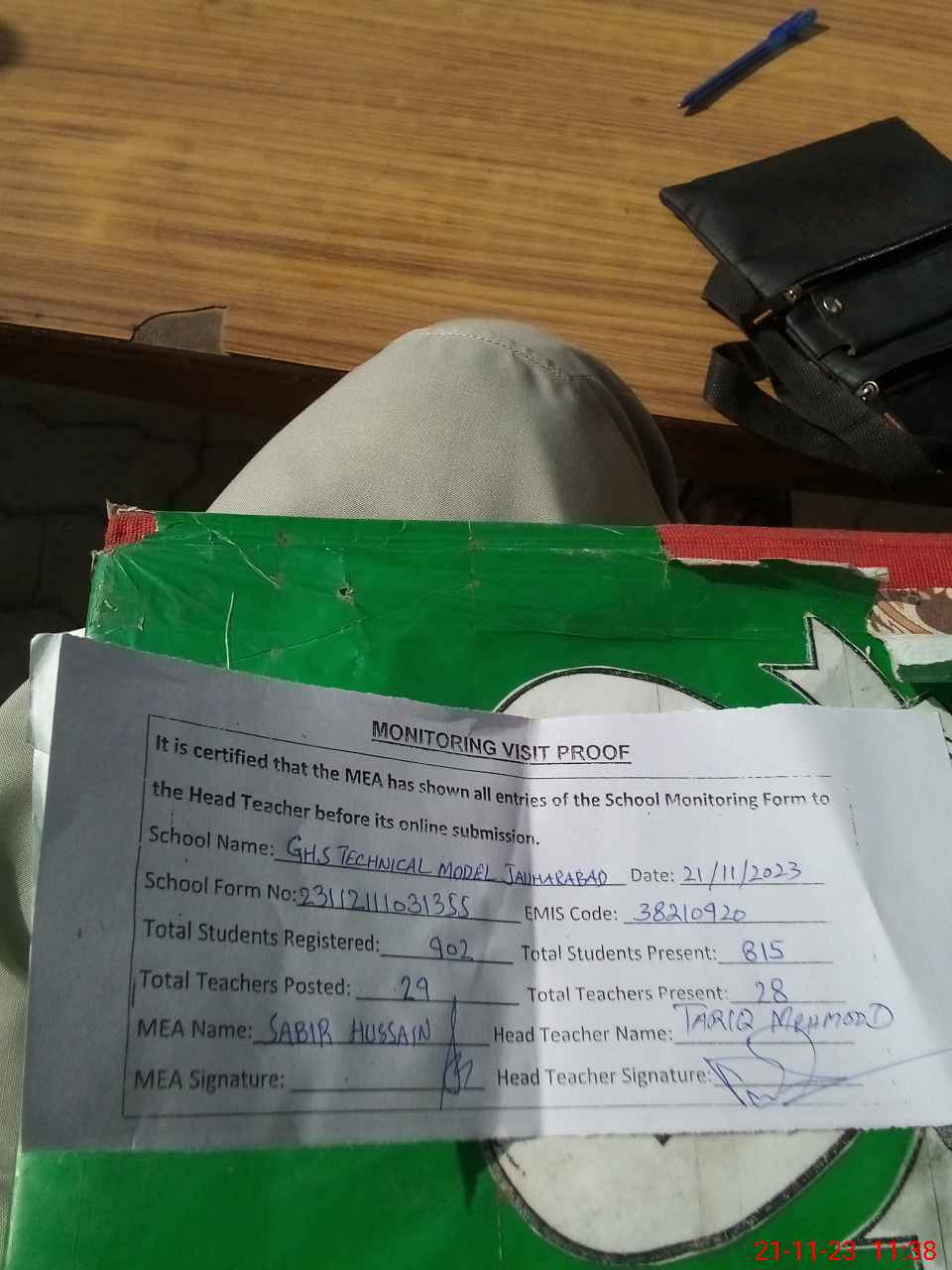 | EMIS Code: 38210920 | Name of School: GHS TECHNICAL MODEL JAUHAR ABAD | |||