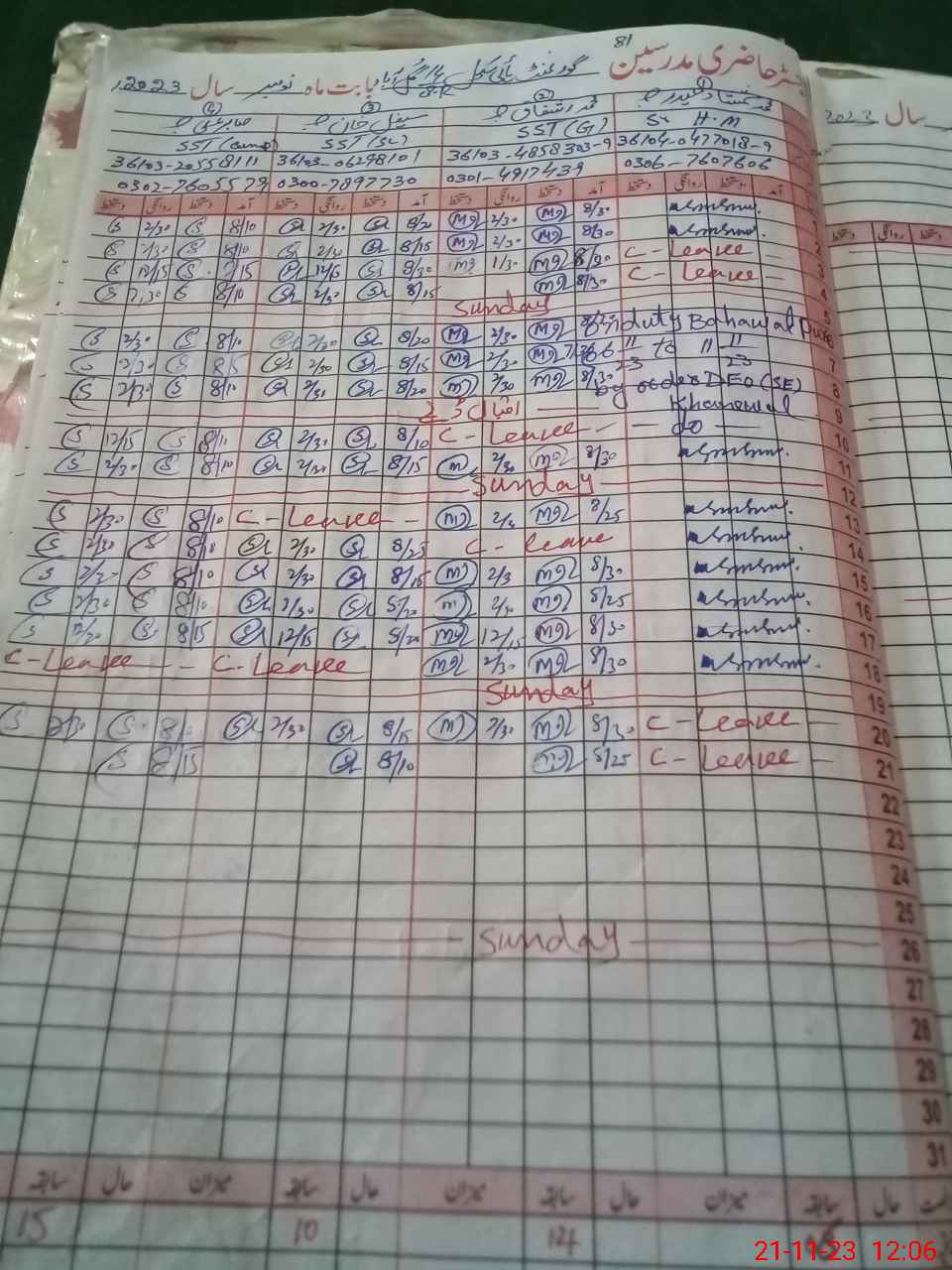 | CNIC | Full Name | Designation | R/C | Absence During Last Calender Month |