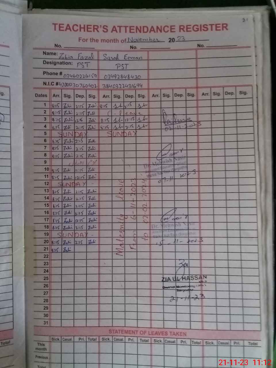 | Name: ZO**** FA**** Designation: (School Headmaster's/Headmistress's) PST Phone/Cell Number: 03**** |