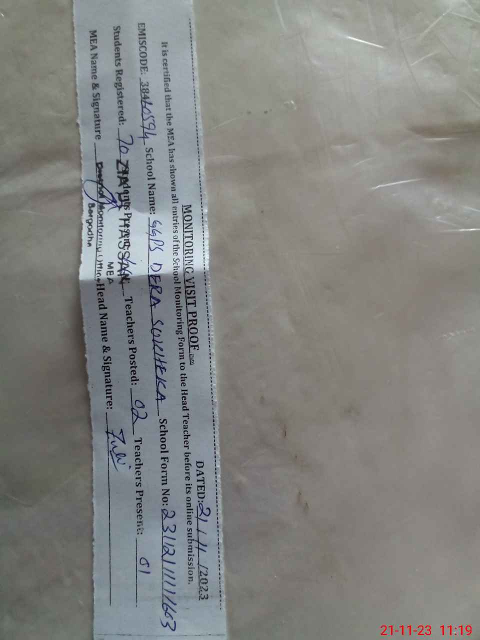 | EMIS Code: 38460594 | Name of School: GGPS DERA SUKH-E-KA | |||