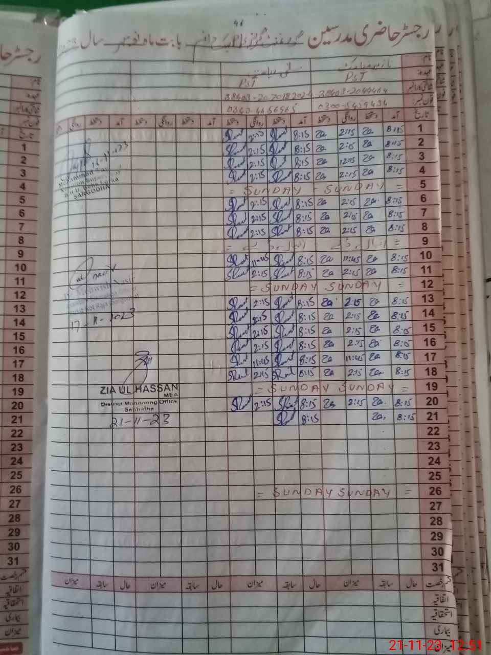 | Name: NA**** MU**** Designation: (School Headmaster's/Headmistress's) PST Phone/Cell Number: 03**** |