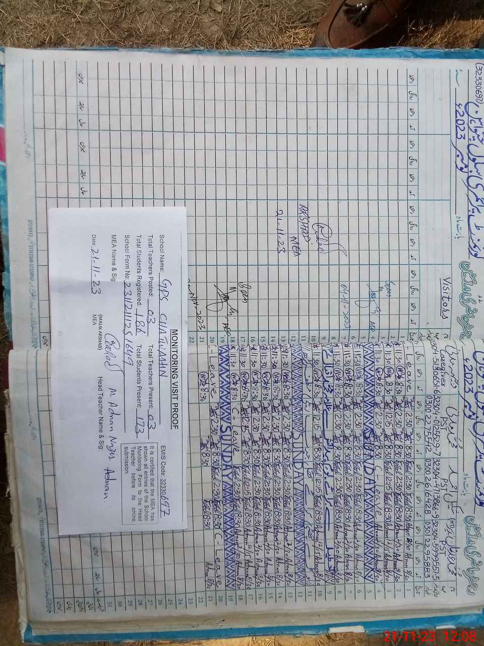 | Attendance Register | Head Teacher | MEA with School | Visit Proof |