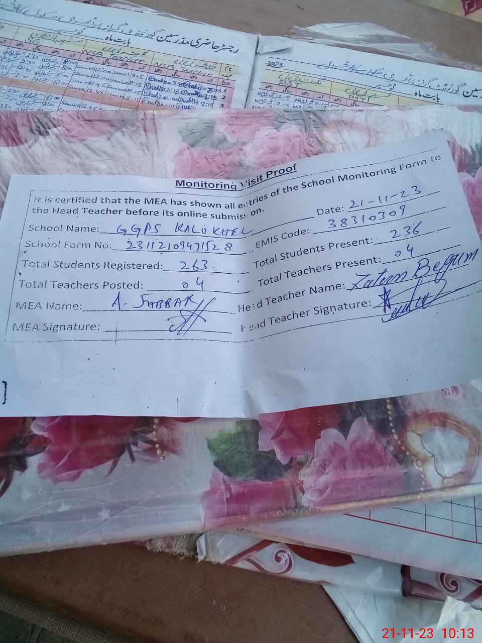 | EMIS Code: 38310309 | Name of School: GGPS KALO KHEL | |||