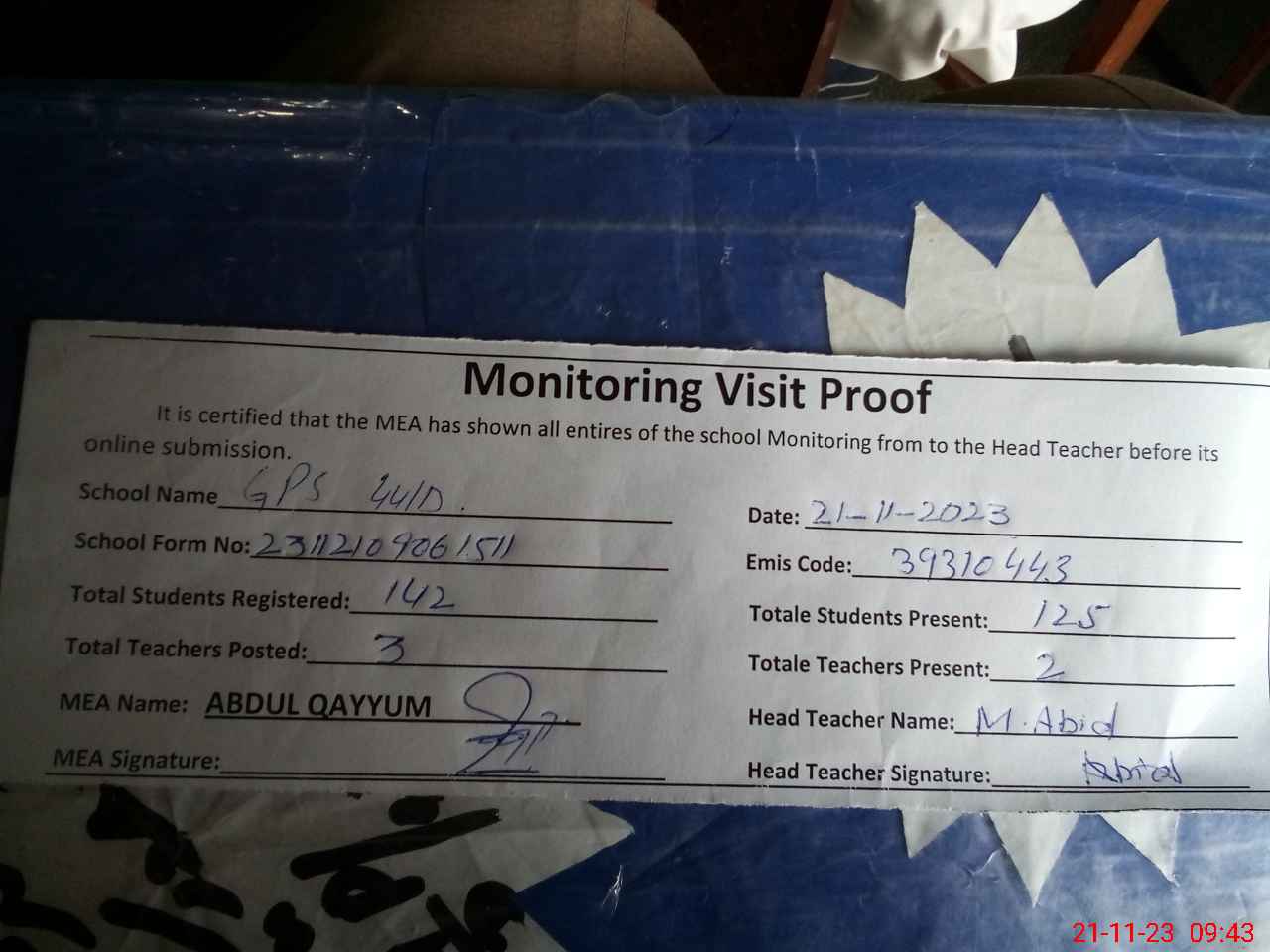 | EMIS Code: 39310443 | Name of School: GPS CHAK NO.44-D | |||