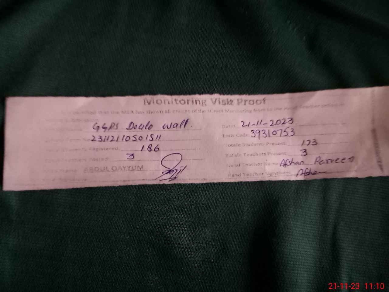 | Name: AF**** PA**** Designation: (School Headmaster's/Headmistress's) PST Phone/Cell Number: 03**** |