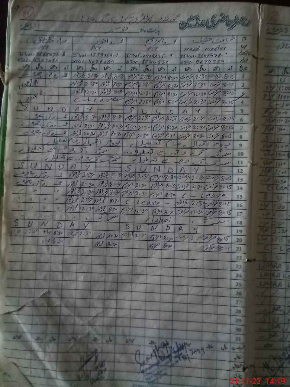 | Name: SH**** HA**** Designation: (School Headmaster's/Headmistress's) PTC/JV Phone/Cell Number: 03**** |