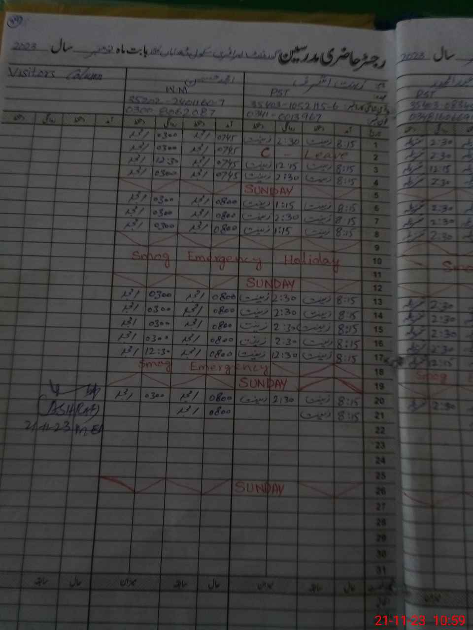 | CNIC | Full Name | Designation | R/C | Absence During Last Calender Month |