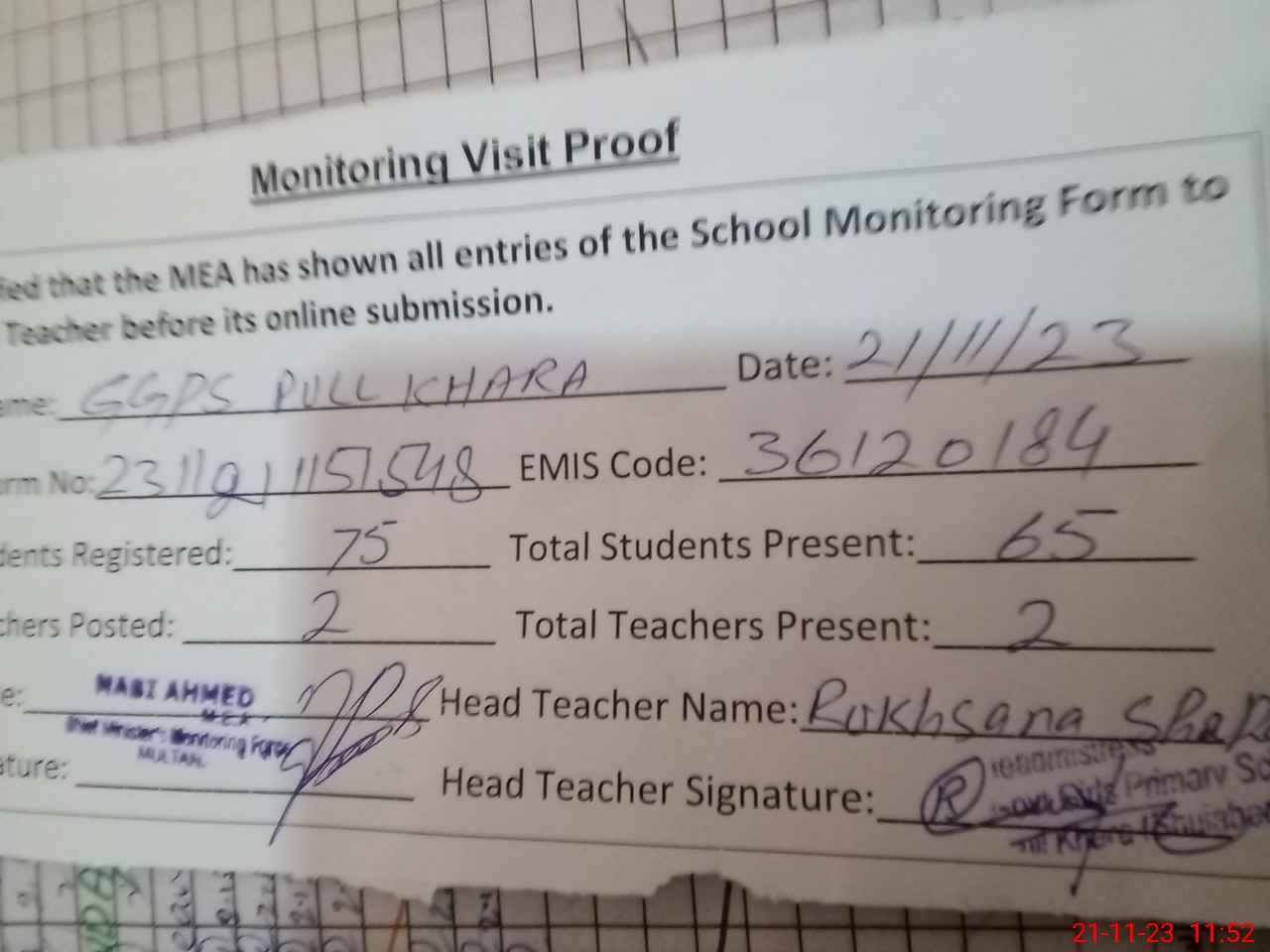 | EMIS Code: 36120184 | Name of School: GGPS PUL KHARA SHUJABAD | |||