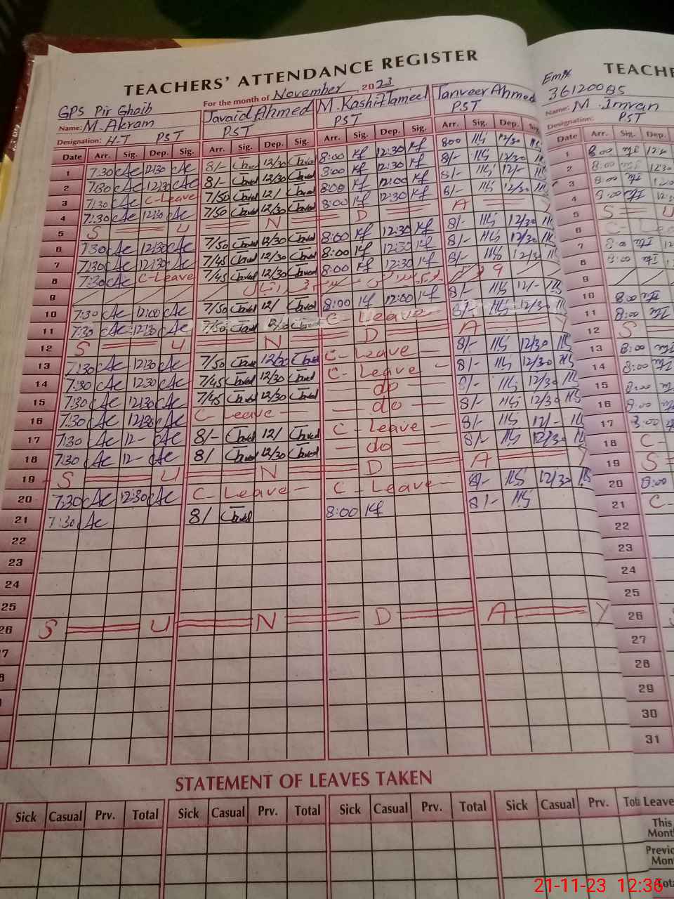 | CNIC | Full Name | Designation | R/C | Absence During Last Calender Month |