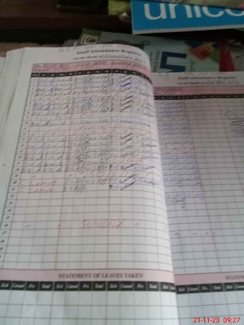 | Leave | Duty | Absent | Maternity | Medical | Ex- Pak |