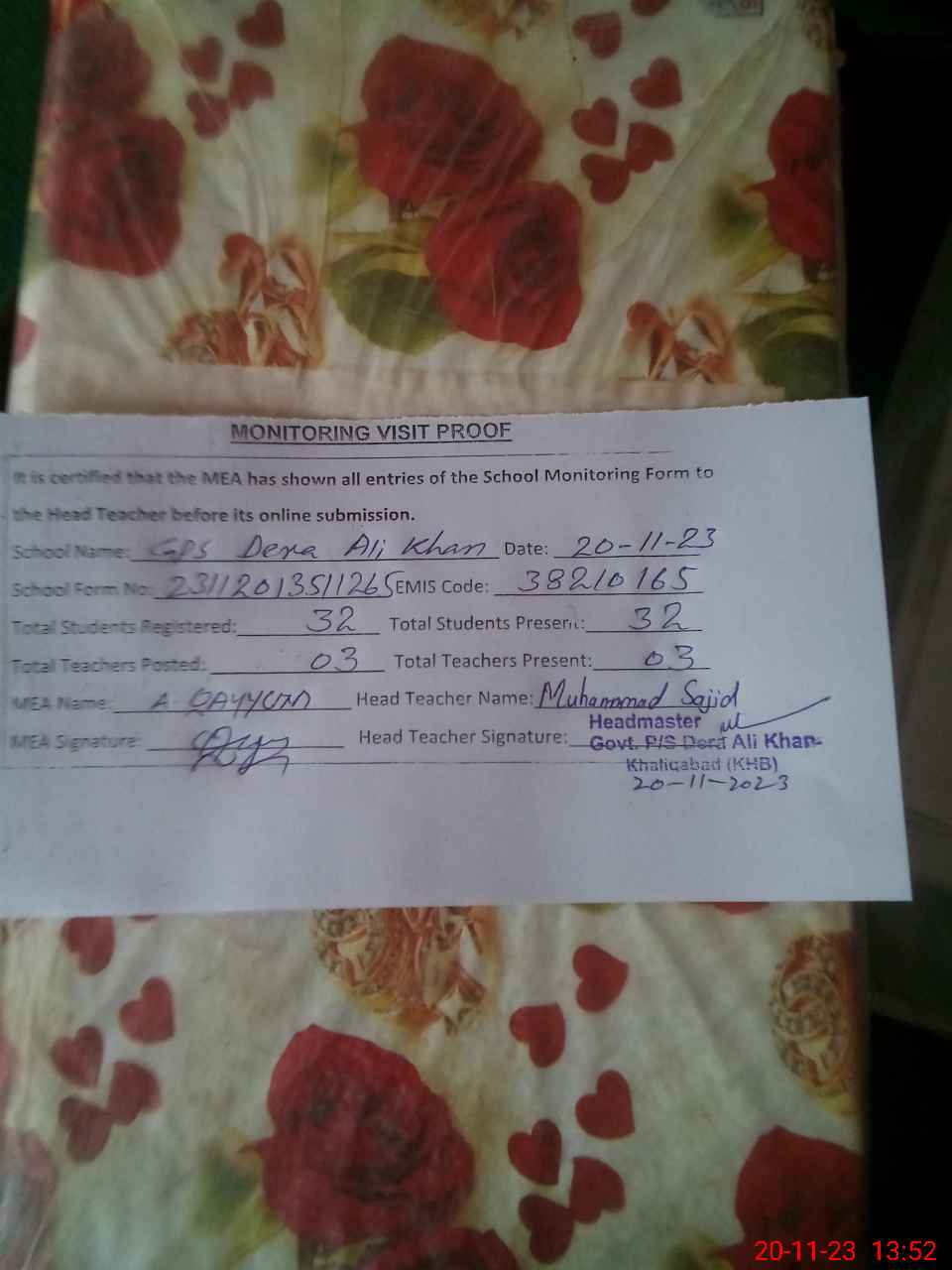| EMIS Code: 38210165 | Name of School: GPS DERA ALI KHAN | |||