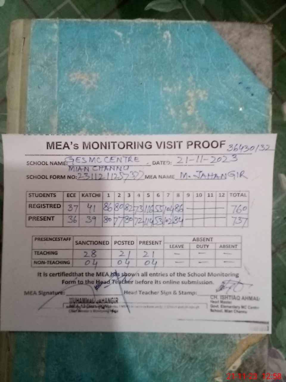 | EMIS Code: 36430132 | Name of School: GES MC CENTRE MIAN CHANNU | |||