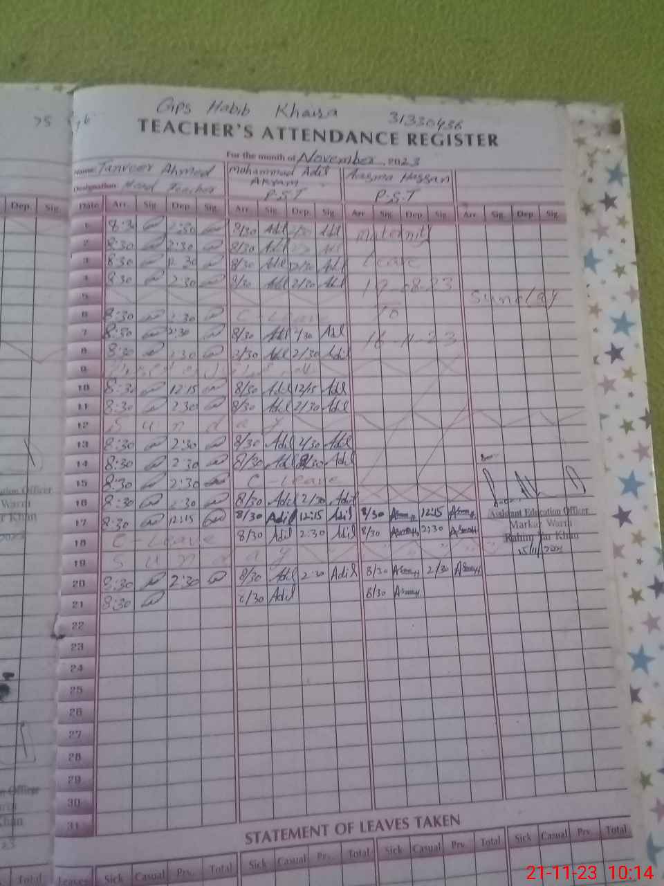 | Name: Mu**** Ad**** Ak**** Designation: (School Headmaster's/Headmistress's) PST Phone/Cell Number: 03**** |
